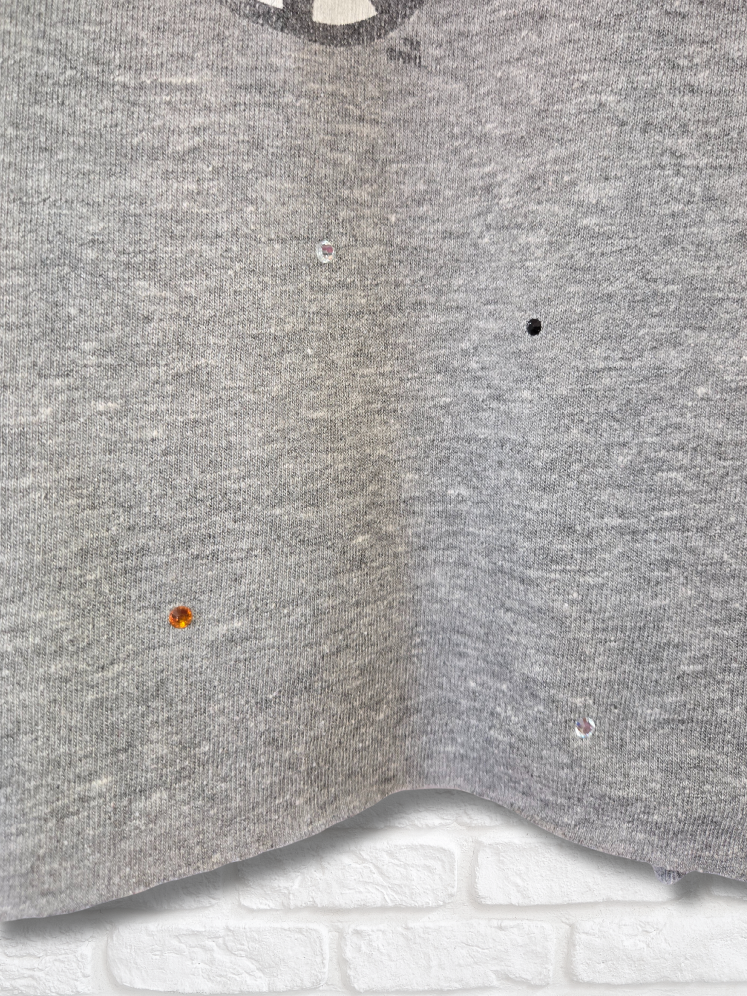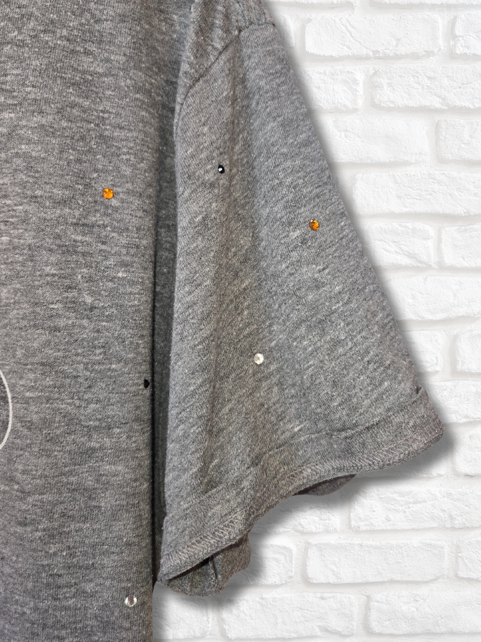 •Rhinestone detail with raw-edge hem throughout