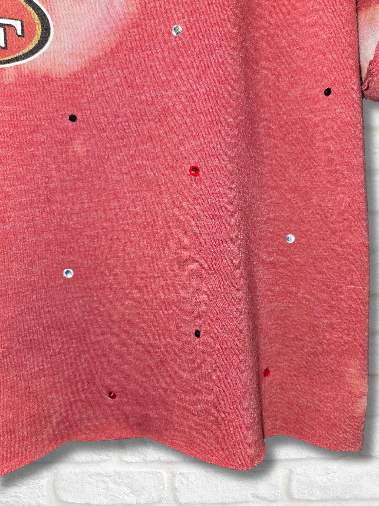 •Rhinestone detail with raw-edge hem throughout