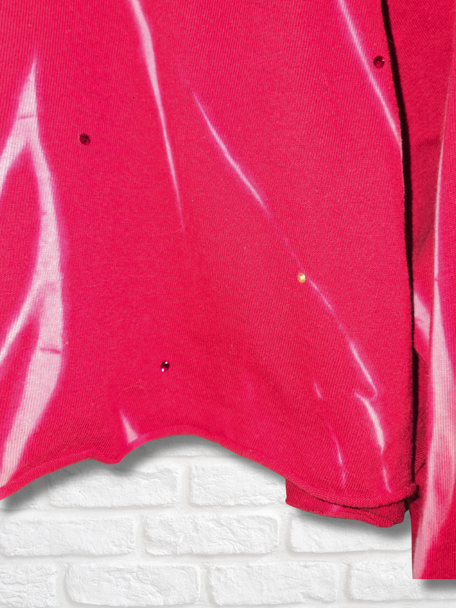 •Rhinestone detail with raw-edge hem throughout